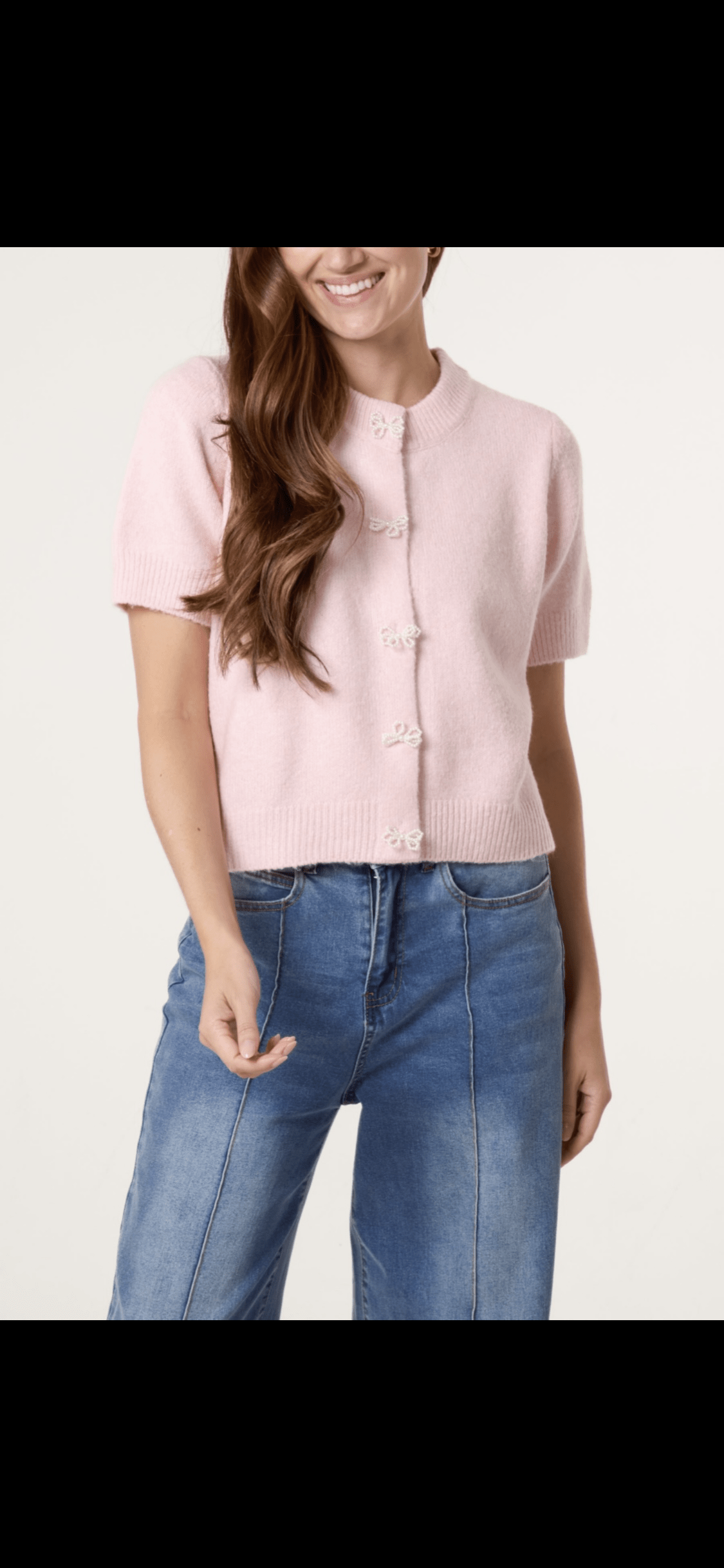Our soft touch cardigan are beautifully designed with a pearled bow as the buttons