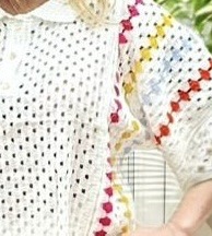 A button up crochet top with a collar lovely colour detailing to give it a pop