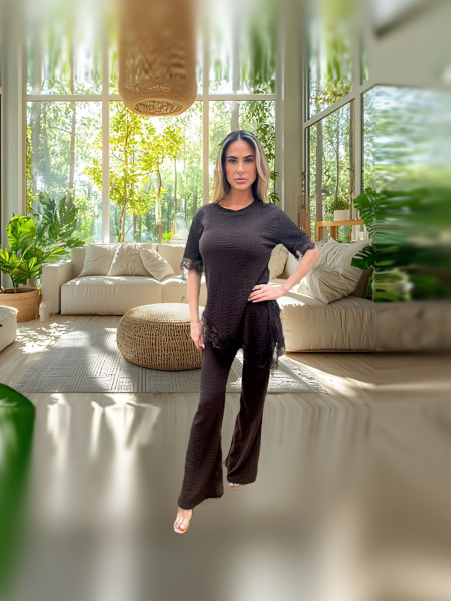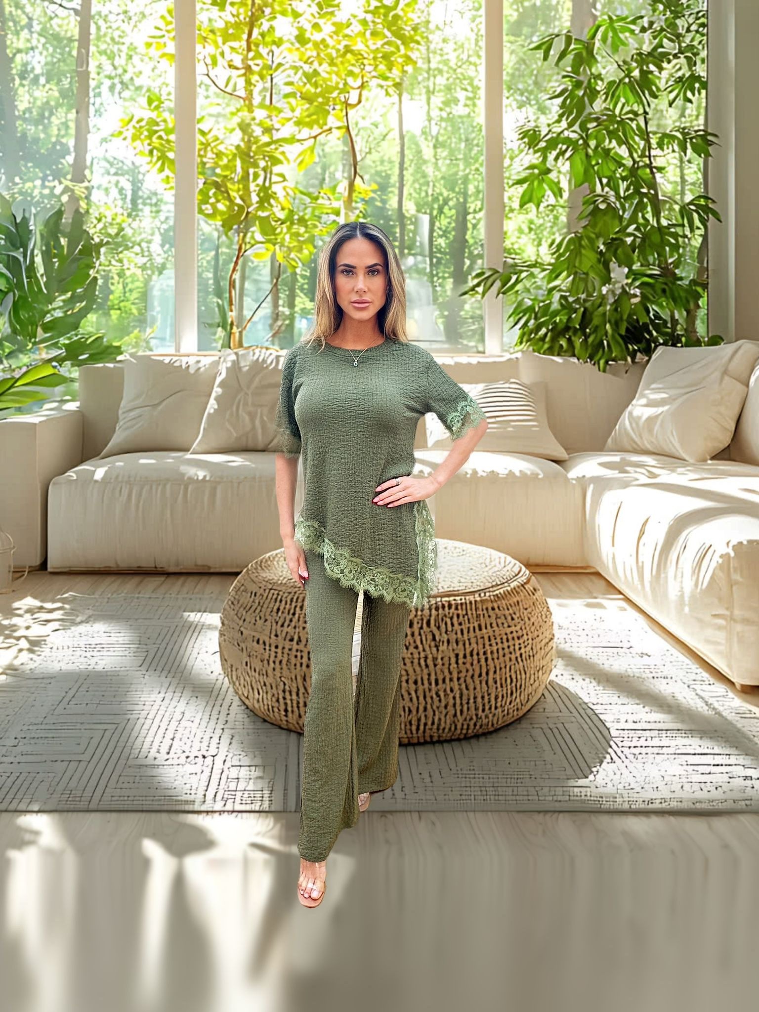 Our Laced trim top paired with matching elasticated trousers