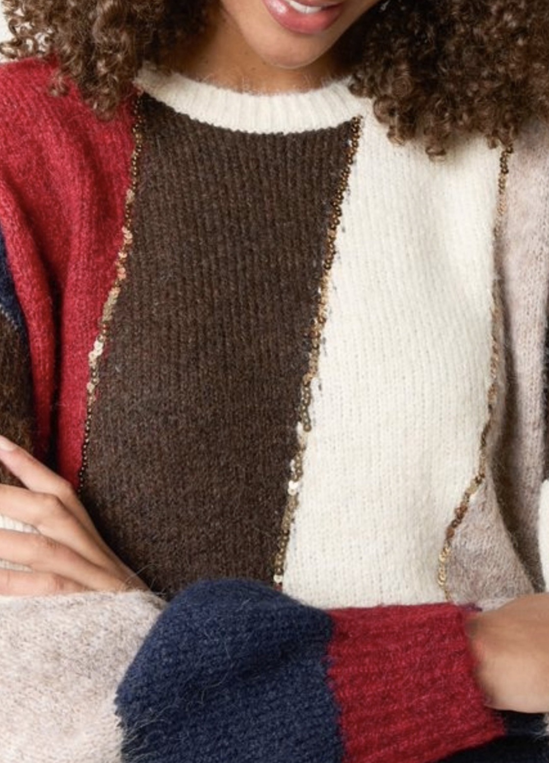 Fine knit jumper with gold lurex threading though it