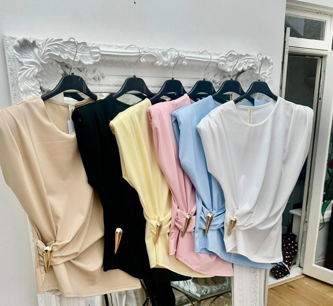 This is a beautiful soft fabric featuring a gorgeous gold pendent on the side that winches in the waist